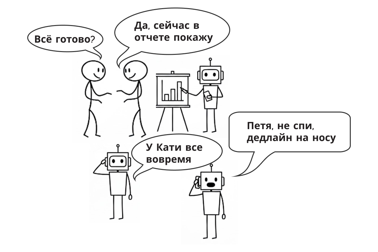 Приходится постоянно всех дергать "ну что, ну как", "я создам чат".